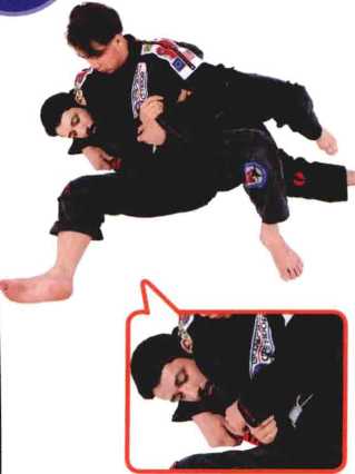 上半身也缩进去,左手抓住对方的腰带或者裤子,