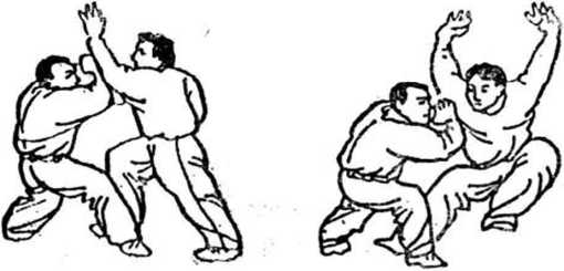 (1)甲用右掌冲击乙前胸,乙速空身,以右手扣掳甲