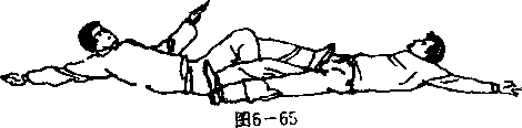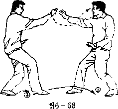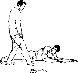 膝内侧(图6—76) o敌被蹬必仰身后倒。膝内侧(图6—76) o敌被蹬必仰身后倒。图6-76图6-76