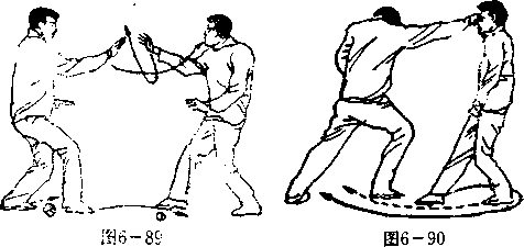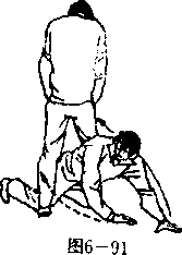 或后背向后靠顶敌之臀部(图6—92) o敌被靠顶必俯身而 倒。