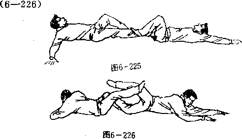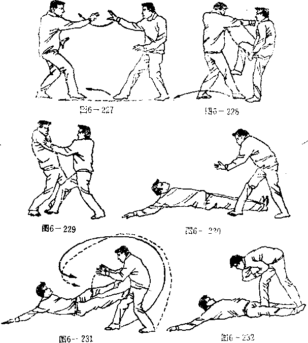 藻翻动作。下落时我以肩、后背或双足向其胸部猛砸(或下 :踏。图6—232)。敌被砸必受重伤而失去再战之能力。