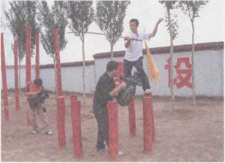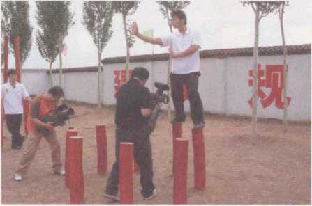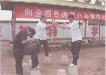 选手朱庆垒、秦基文桩上,、卦掌对练