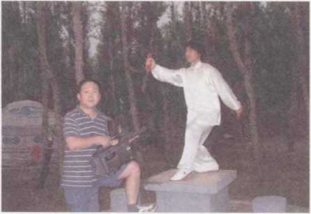选手秦基文、尹步战虹沿上合练八卦掌器械
