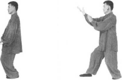 向前上右步,同时双臂外旋,掌心向上,掌指向前,右掌在前 左掌在后向面前穿出,自然呼吸,气沉丹田,二目向前平视。