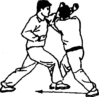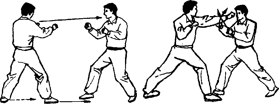 〔要点〕顶肘的关键在于扭腰,一般顶右肘先左扭腰, 顶左肘先右扭腰,然后再回腰并下沉重心和前移重心向前顶 肘,这样才有强大的打击力。