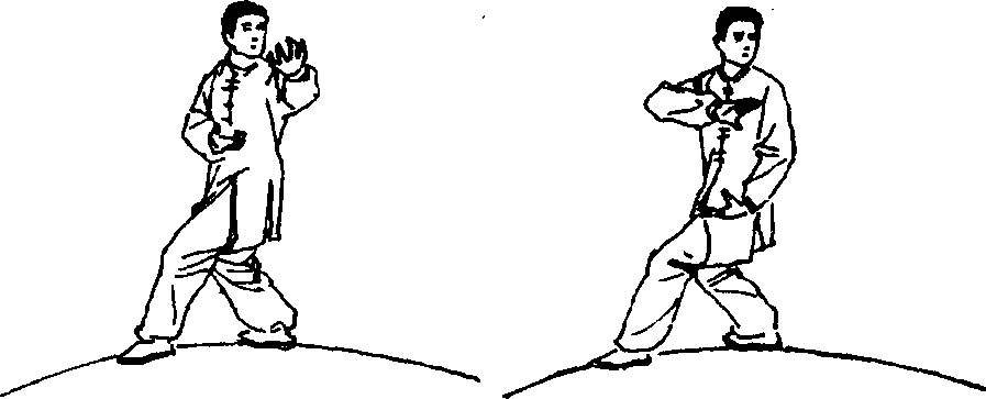 动作说明:身形步形同前势。左手五指自然分开,屈指