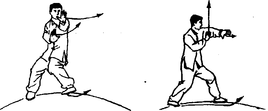 〔善意〕借扭腰之力化拨推开击来之敌。
