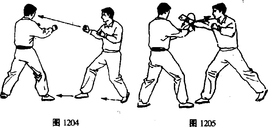乙右脚进步左脚跟步以右直拳击甲面部。(图1205)