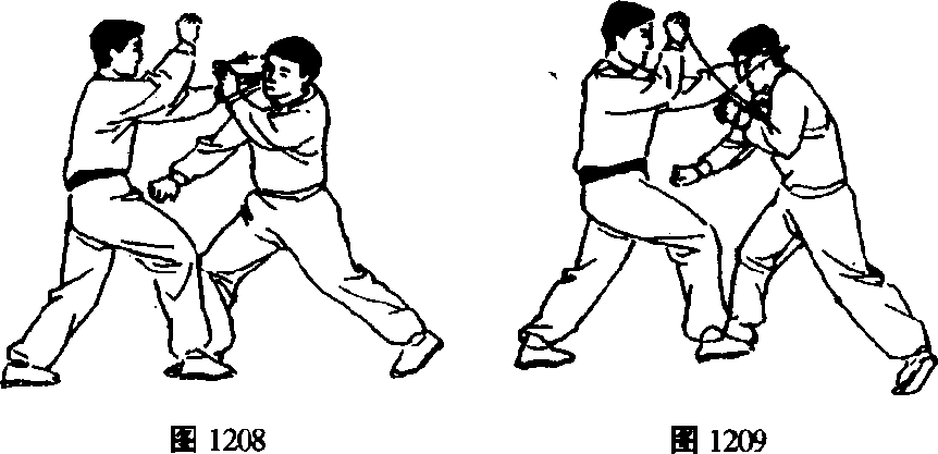 从右臂下穿出戳乙咽喉。(图1208)