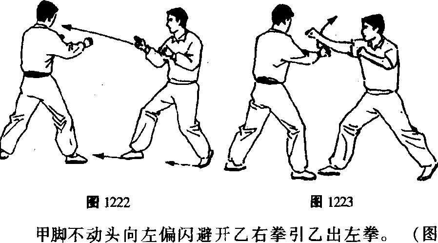 乙右脚进步左脚跟步以右拳击甲面部。(图1223)