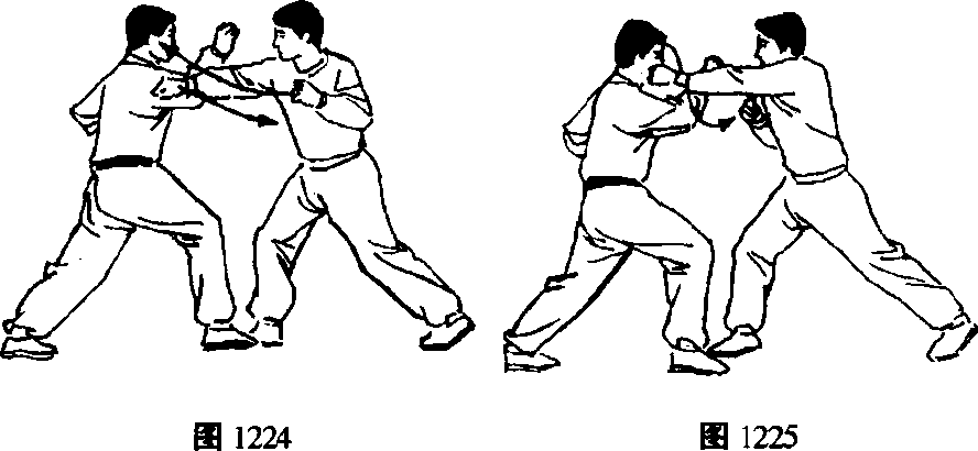 乙右拳收回,出左拳击甲面部。(图1225)
