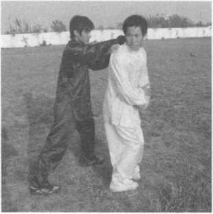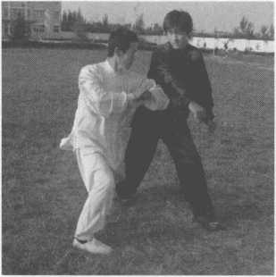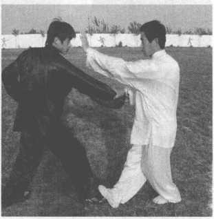 接上势,乙撤右脚、抽右臂。(图13-241 )