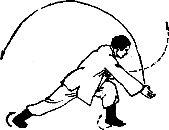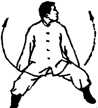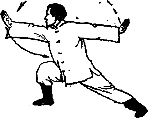 ① 两臂松摆要成立圆,肘部不可挺直。眼博右拳。