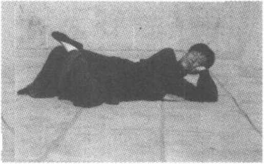 图2-103就地十八滚图2-103就地十八滚另一腿回收90。,大腿与小腿前后相依。腰背自然弯曲成弧形,目、 口自然微闭,舌轻轻抵于腭部。要周身自然放松,有催人入睡之 功。面向前方(图2- 102) o