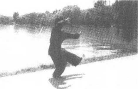 要点:踢寸腿时,挺膝、挺胸、直腰;手脚齐起,放长击远,动作 协调,刚猛有力,力达脚掌。