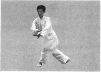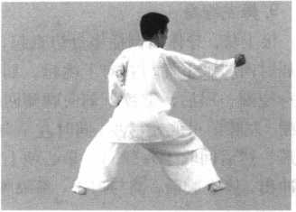 图3-9-3斜身拗步 肘由肋部翻腕向前穿出,
