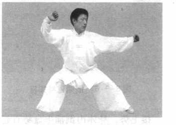 动作要点:震右脚夺取左脚之位疾速,左脚让位向左迈出要 快,双脚互换与两臂旋摆撩绕摔打要配合身法同时运动。动作紧 凑,协调连贯。