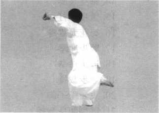 图3-10-2震脚拉丁 外撑肘摔开,呈弧形。动
