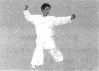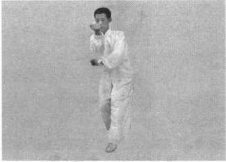外摆向前迈出,落脚成三 图3-15-27斜身十字振方捶