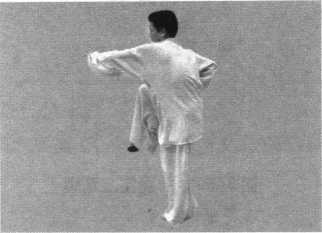 合身法同时运行。整个动作注重右臂的摆击力和攒击力,力从内 发,达于右臂。