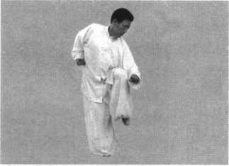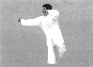 动作要点:攉手时提膝、收腹、踅腰。冲拳时要挺胸、展背、 顺肩、直臂。动作迅速连贯,注重右臂的冲击力,力从内发,协