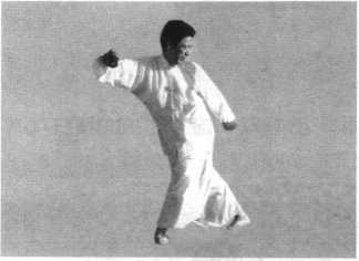 技击时,使用寸腿的招势招法很多,如:扒打寸腿、上扒打、下扒 打(是指打上踢下),还可以变化,如迎面劈砸、勾踢等。目视前 方(图 2—26)。