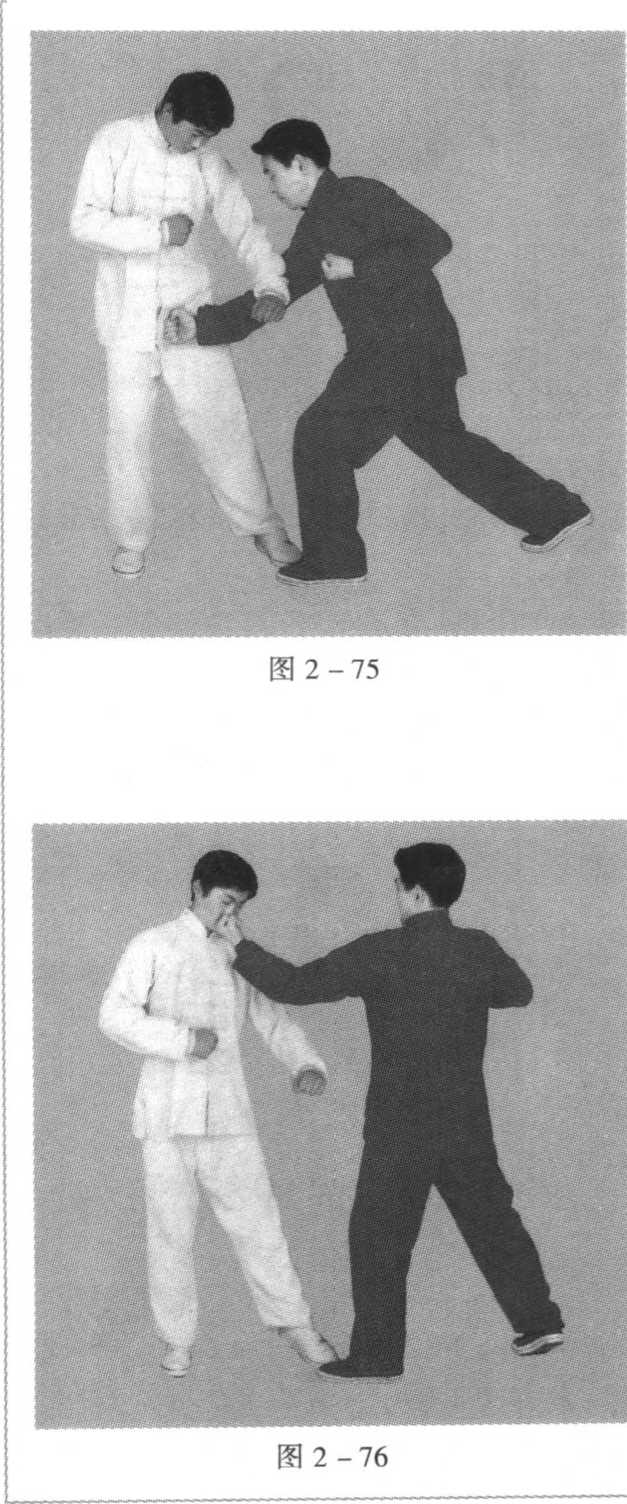 (3)跟踪追击, 连用拳掏击敌面 门。(ffl 2-76)