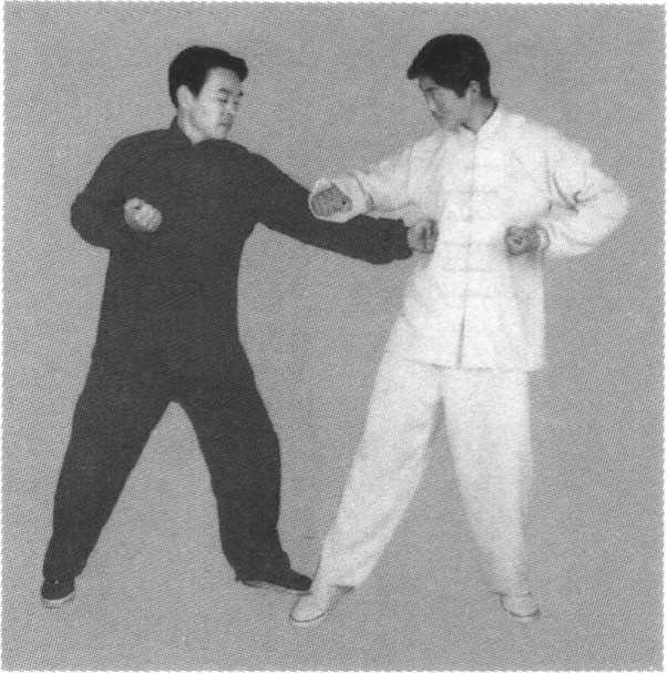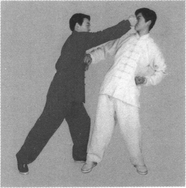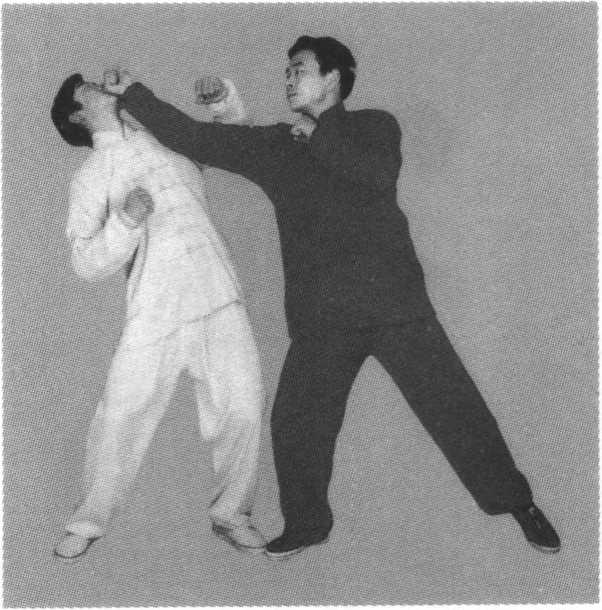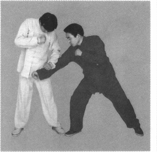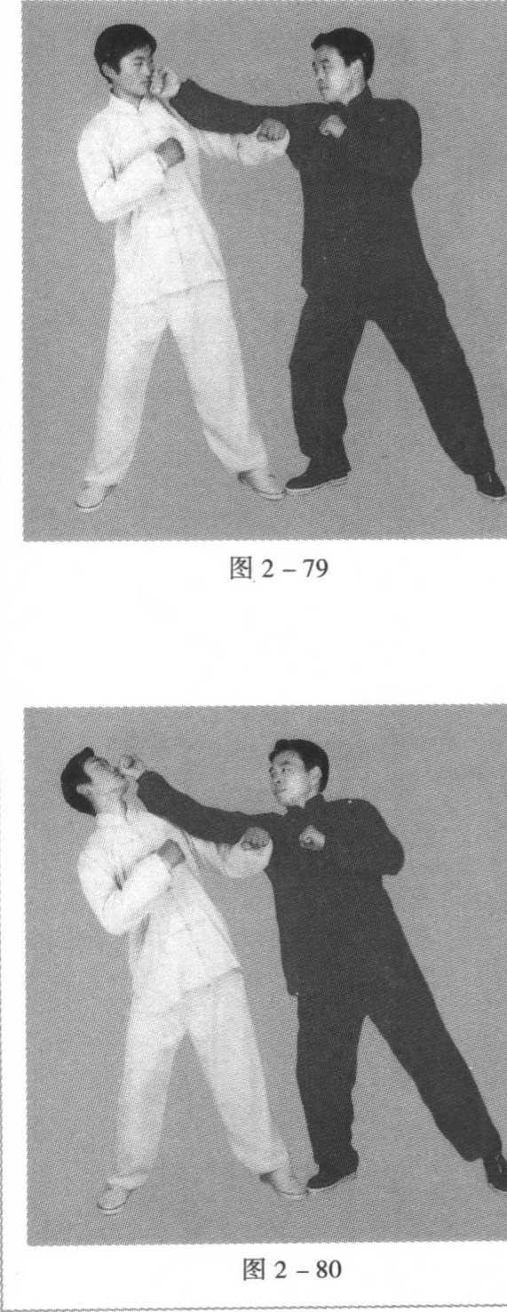 (2)我见机急 进,先用拳崩击敌 下阴。(图2-81)