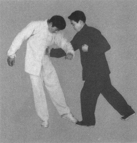 此招专伤下 阴,恶毒无比,一, 旦击中,危及性 命,非万不得已, 不要轻用。攻击 时,桩法配合,重 心下沉,身形前 趋,更利于接近目 标和整重发力。