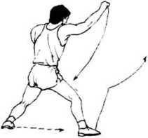 要领:利用转体发出迅猛的抽打力量.支撑脚转动要灵