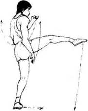 要领:动作迅速,利用足弓弹性快速提膝.膝关节里扣护 裆。