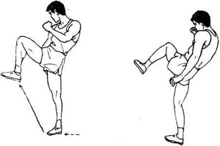 由右实战势开始,右脚向前上一小步,右腿挺直或略屈膝 支撑,身向右转,左腿屈膝向右斜上方顶击,左手甩至左下方, 右手护脸(图363)。图362图362图363图363图362图362图363图363? 1;>3 .要领:腹肌猛烈收缩,增大顶击力魇。