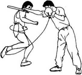 短棍练习目的在于增强拳手搏击中躲闪、切入技能,因为 助手手持短棍打击距离远、打击面较大,客观上拉长了双方的 作战距离,倘若拳手刻苦训练后能在这种远距离之外发起反 击或进攻,并且闪电般地击中对手,则致胜希望大大增加。而 且这种能力在徒手对凶器的防卫格斗中尤其具有效用。