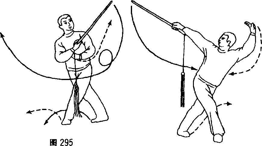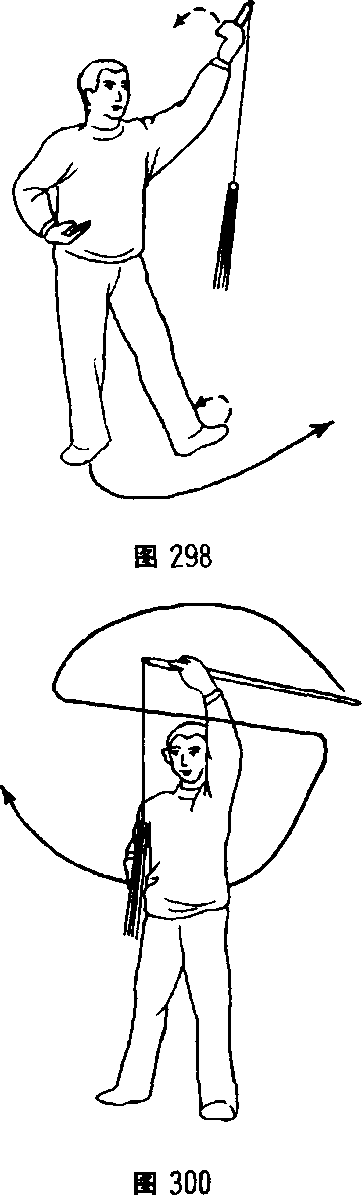图301(3)背后接剑,使穗在背后 绕一立圆,上身挺直,不能低头 躲穗,更不能突臀,使穗顺利通 过,走一立圆。图301(3)背后接剑,使穗在背后 绕一立圆,上身挺直,不能低头 躲穗,更不能突臀,使穗顺利通 过,走一立圆。图302