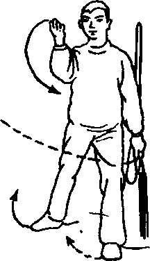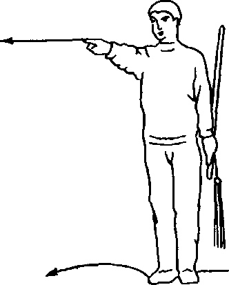要点:向南并步站立时身 体要正直,要顶头竖颈,右臂要 伸直。