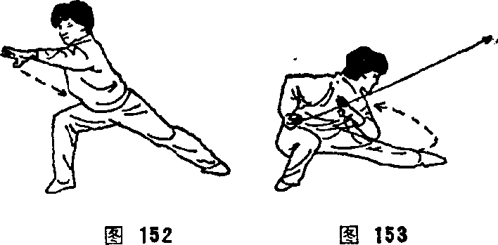 心向上,右拳向前平直冲出,拳心向下,目视前方(见图 154) o