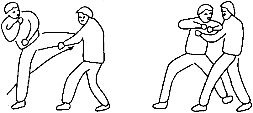 2. 扫肋肘顶接膝撞