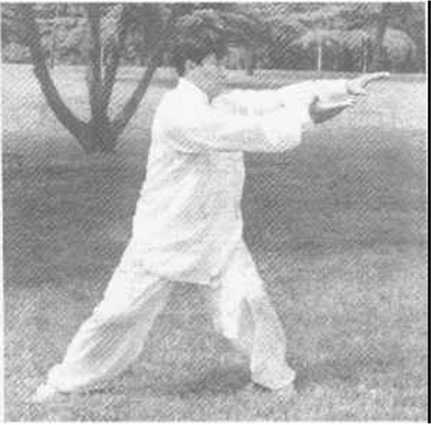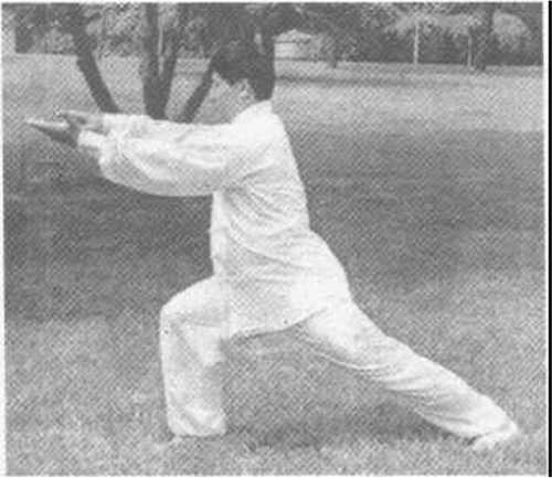 (1)接上动作躯体向右转,两手随动并同时旋转至右斜方, 右手内旋至手心向下,左手外旋至手心向上,两手与肩平,距离 肩宽,两手相齐。头正,身直,目视两手中间。鼻尖、小腹、右 足尖上下相对(图12) o图12(2)接上动作继续向左转,两手随动并同时旋转,左手内 旋至手心向下,右手外旋至手心向上。重心落于左脚,左足主 力,右足吸力。两手与肩平,距离与肩宽,两手相齐。头正,身 直,目视两手中间;鼻尖、小腹、膝盖、足尖上下相对(图 13)o图13