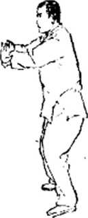 要领,这个动作练时速度稍快。要求开展时要轻松舒 展,上下左右斜正相合,内外结合。两腿顺逆缠劲,要缠到 大腿根裆内,会阴穴要虚要圆。