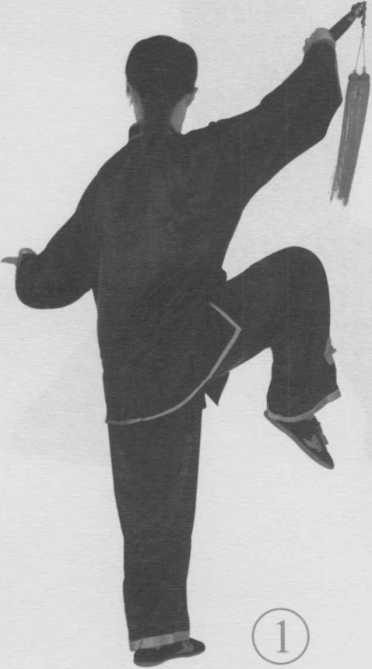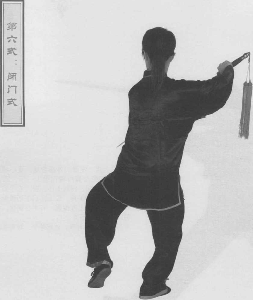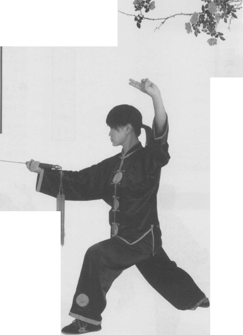 要点提示 剑向上提,身体下沉,屈膝松胯,气沉丹田, 有上下相合之意。