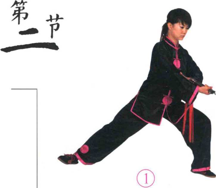 要点提示 抱剑下沉时,要屈膝松胯, 上下相合,有“蓄而待发”之意。