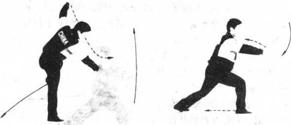 动作二:重心迅速左移,右脚快速向后