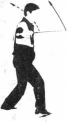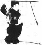 用法:在不能转身的情况,或被人从 背后抱住而不能解脱时用此方法。一腿轻轻 后撤,突然向背后退步发力。脚跟可跺其脚 尖,脊考可打背靠,两肘向后穿肘,也可以 用剑钻向后猛击,促其脱手。 图345
