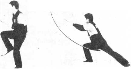 要求:刺剑时,跨大步,重心随即前移,松胯塌腰,沉肘松