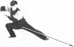 塌腰松胯,劲贯剑尖。