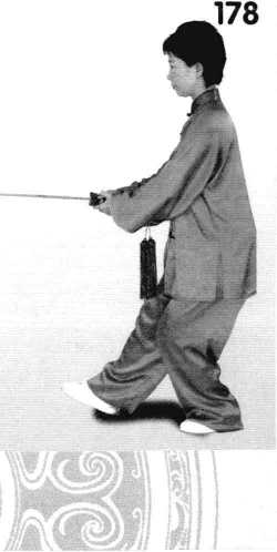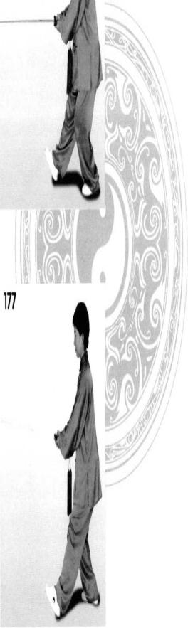 2 .右脚提起,快速向刖上 步,重心由左移右,左脚向前 上步,重心再移左。(图176、 177、 178)