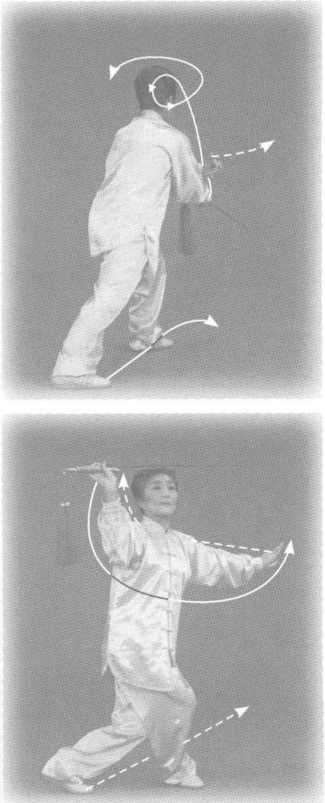 。王步与穿剑同时,盖步与云 剑同时,上下要协调配合。