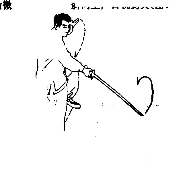 1 .太极*褰%”一动无点不动,为了达到一动全动,必 须以腴背为中心,四为膜是左右平行精动的中轴,背是上下 弯曲的根塞。图之此式中当左脚向后落步时,膜部须有螺旋 式软丝动作,这种旋转直接形于剑才出现逆时针划孤动作, 而加果光是手麻划张,是一种“蒙断劲”,并且显得津、浮。