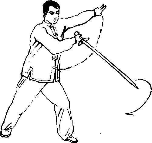 一次,这里的剑撩动作象征着“车轮”,所以动作须圆话连 贯、剑法清晰、协调完整。