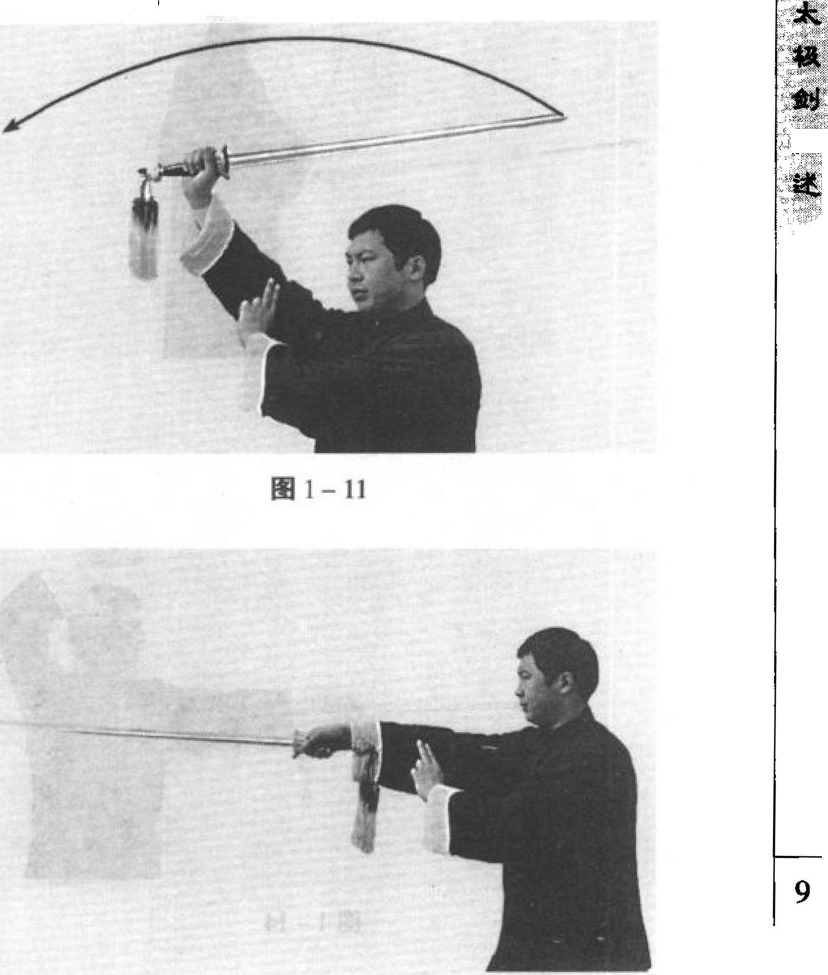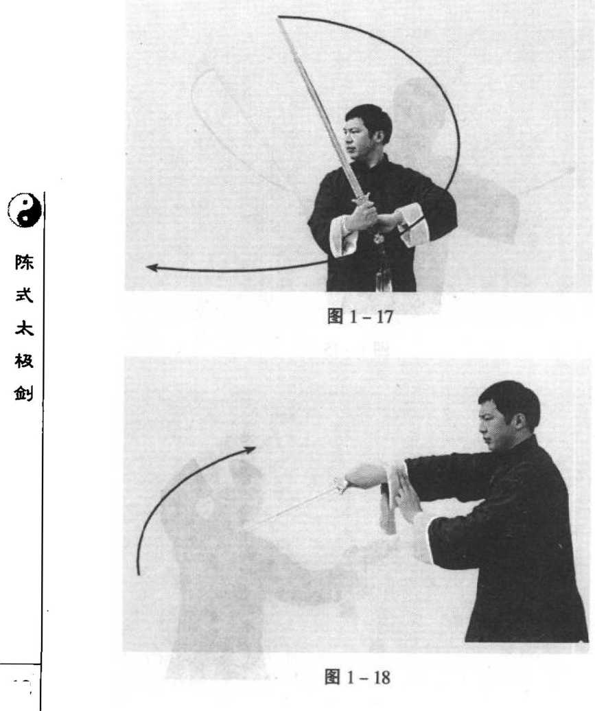 1 .劈剑正握剑,由上而下做直落运动,力达剑身下刃,称为立劈 (图 1-11、1-12)。2 .刺剑握剑屈臂前伸,力达剑尖(图1-13、1-14)。3 .撩剑图”15图”15图 1 - 16图 1 - 16(1)正撩剑:正握剑,由体侧后方向下经体侧向前上方作 弧线运动,并成反握剑,力达剑身前刃(图1-15、图”15图”15图 1 - 16图 1 - 16(2)反撩剑:正握剑,由体前向后向下经体侧向前作弧线 运动,并成反握剑,力达剑身前刃(图1-17、1-18)。